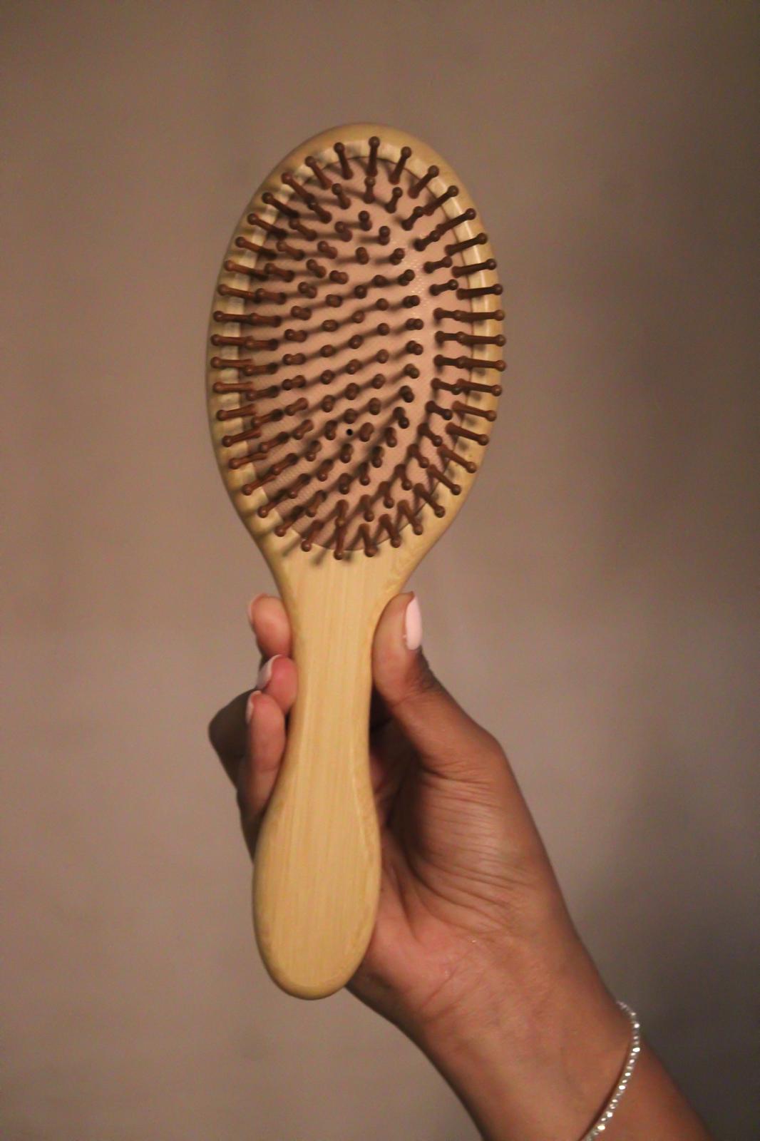 Brossez vos cheveux en douceur avec notre brosse en bambou naturelle.